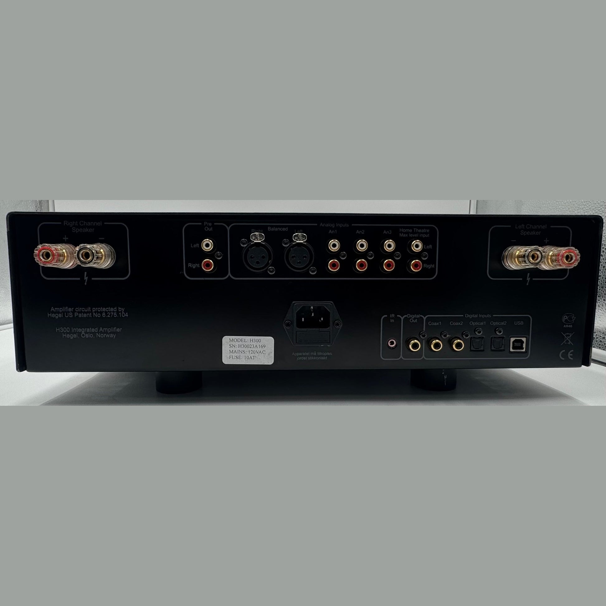 The biggest step forward is the preamplifier stage. The high-quality dual-mono construction borrows several ideas from our top-of-the-line preamplifier. This ensures the lowest possible noise and distortion levels. The H300 uses what we call the Hegel 2 amplifier platform. This platform ensures very good channel separation and low noise levels. Still, all sections in the H300 are designed from the ground up specifically for this unit and are far superior to any other integrated amplifier from Hegel. The H300 has a wide range of both analog and digital inputs. It has a fixed-level Home Theater input that allows you to integrate it into a Home Theater system. If you are using advanced remote control systems, you can also control them directly through the direct IR inputs on the back panel.